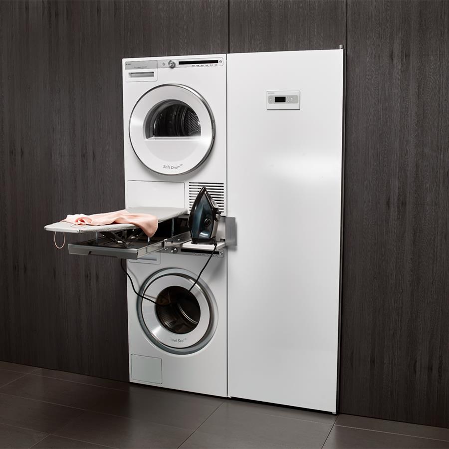 Asse da stiro ricoperto di materiale riflettente il calore integrabile tra tutte le lavatrici e le asciugatrici ASKO