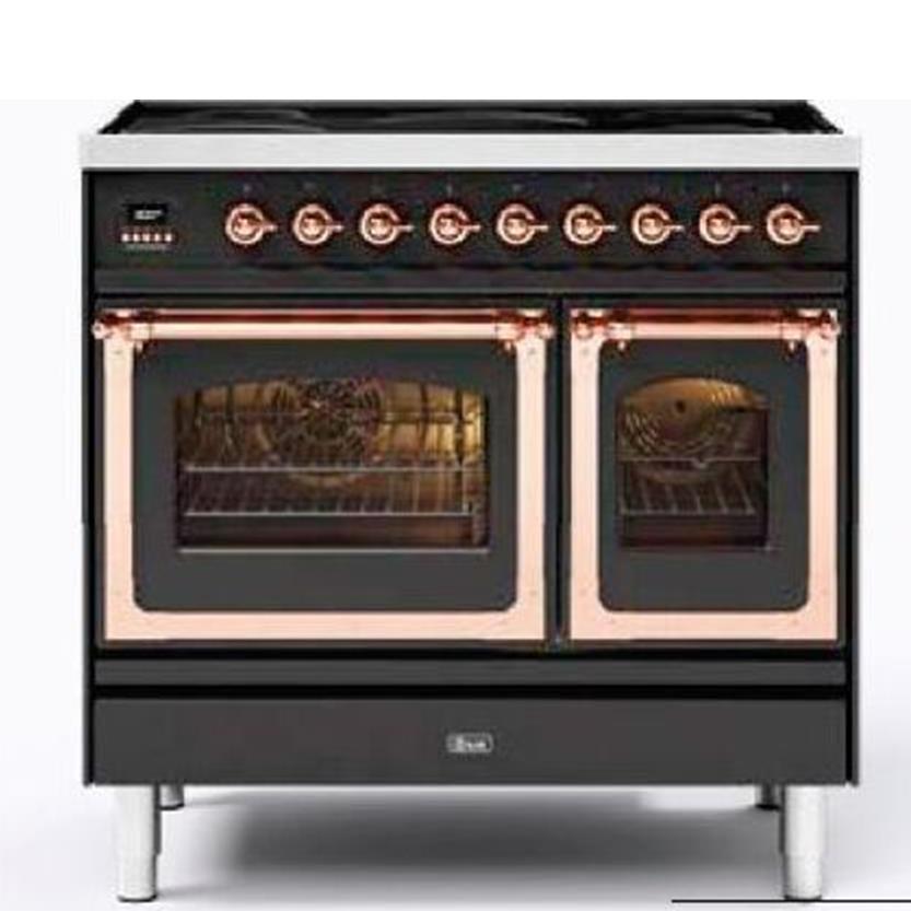 CUCINA NOSTALGIE 90cm DOPPIO FORNO ELETTRICO E PIANO COTTURA 6 FUOCHI GRAFITE MAT-OTTONE