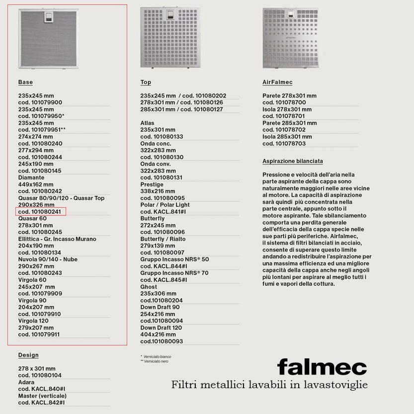 FILTRI 204X190MM PER ELLITTICA E VIRGOLA