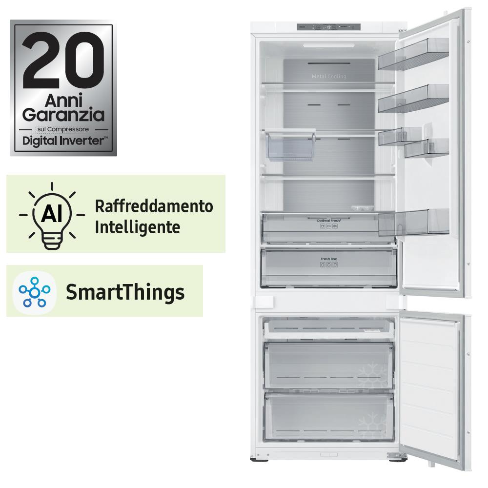 BRB38G705EWW - FRIGORIFERO FIRST PLUSFrigorifero Combinato F1RST™ Plus 75Funzione Cool Select Plus (Trasforma il Freezer in Frigorifero)Space MaxTotal No FrostEfficienza Energetica ECapacità:frigo 289 Litrifreezer 100 LitriCompressore Digital Inverter garantito 20 anniOptimal Fresh+Twin Cooling PlusFresh BoxPower CoolPower FreezePorte ReversibiliDimensioni (LxAxP in cm): 69x193,5x55