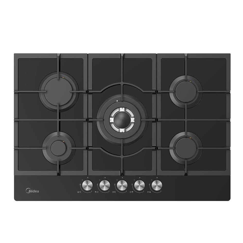 PIANO COTTURA A GAS 5 FUOCHI 75cm TRIPLA CORONA CRISTALLO NERO