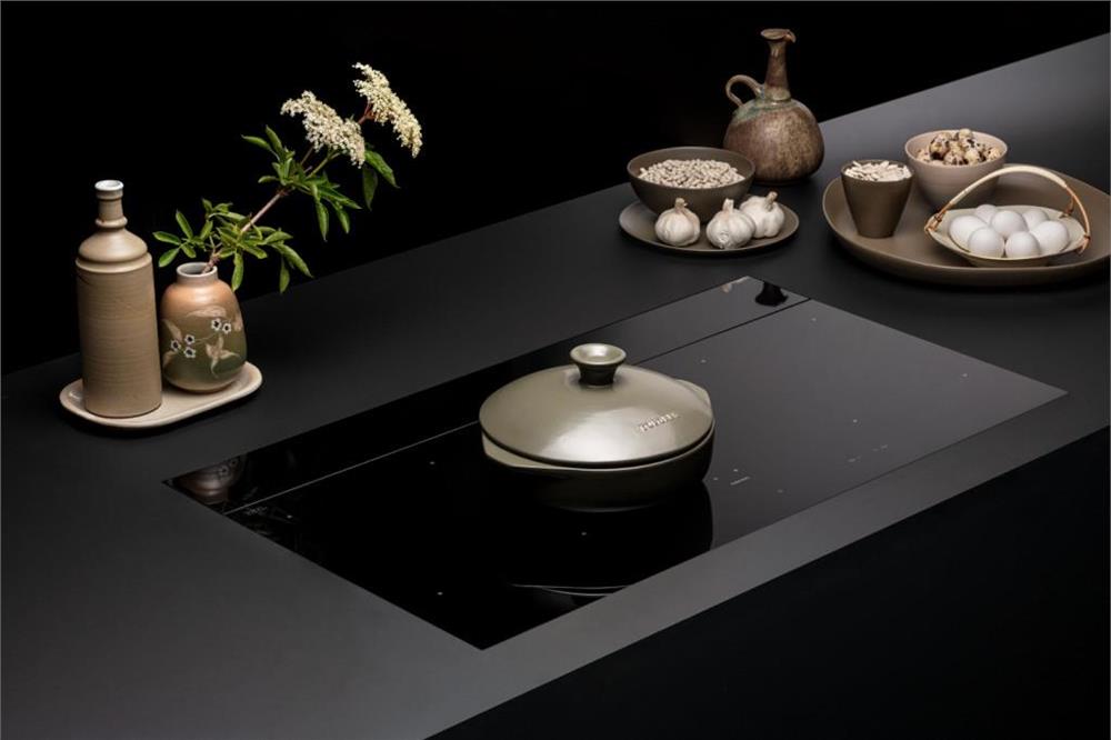 Quando non è in funzione, la parte aspirante si chiude completamente, lasciando il piano a filo e senza fori.