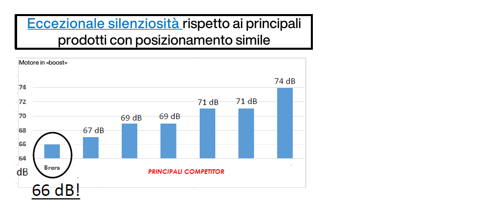 Brera lavora invece con valori che rimangono tra i più bassi tra i prodotti con caratteristiche simili, arrivando a 66 dB in uso intenso.